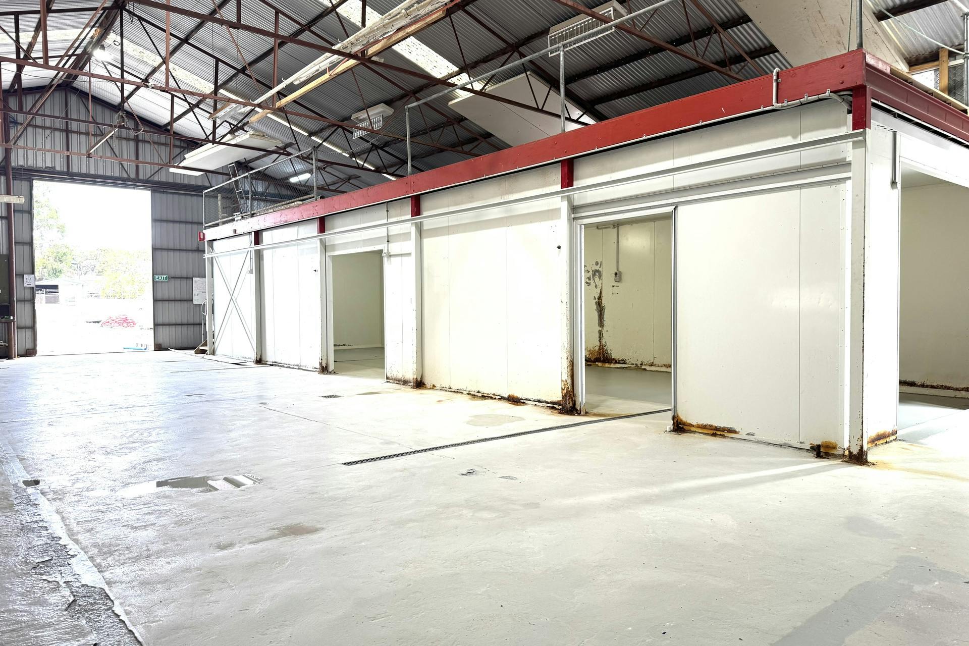 • 22m x 15m high clearance shed with 364m2 floor and storage space including office/reception area with kitchenette and bathroom.
